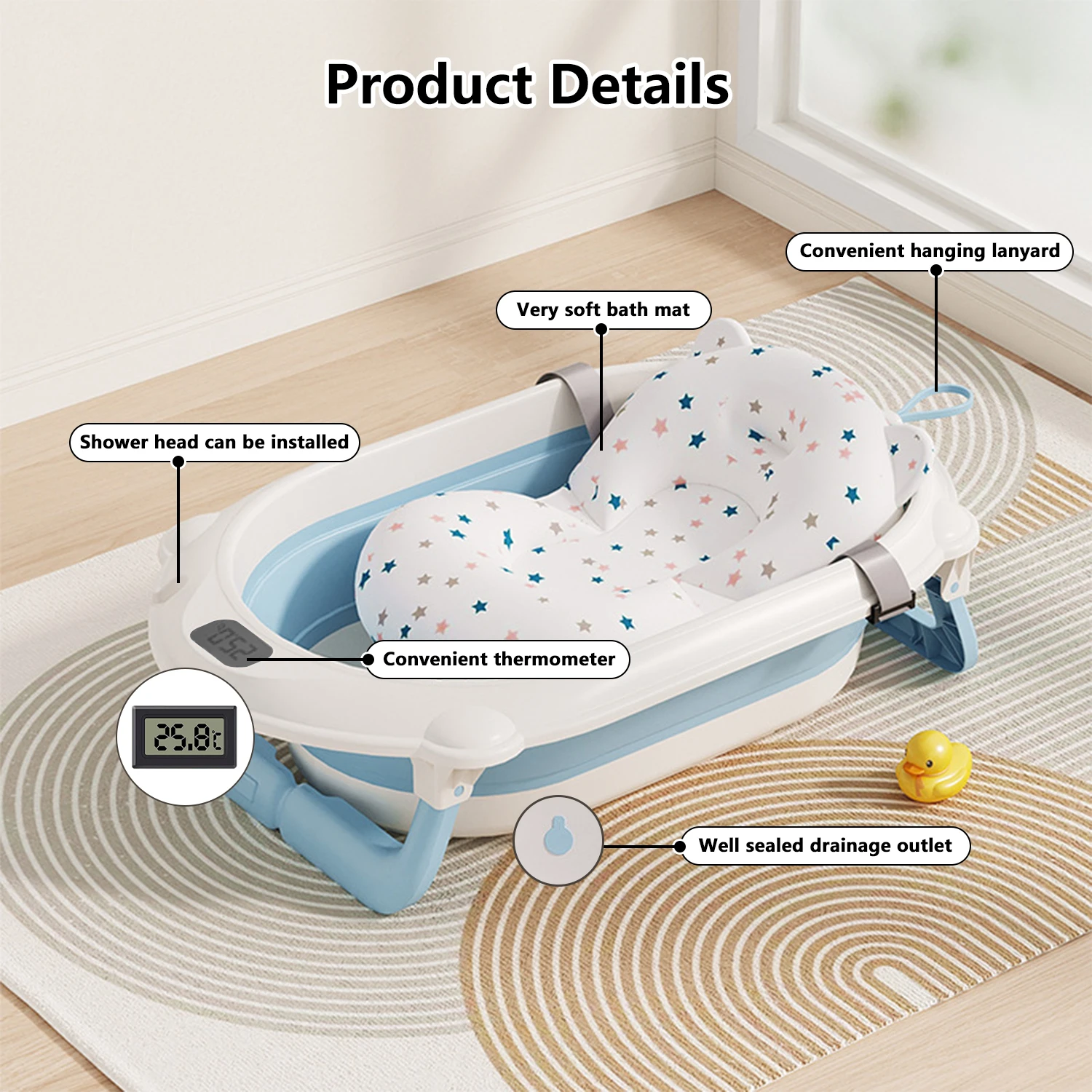 La baignoire est équipée d’oreillers doux et de bretelles réglables, soutenant doucement la tête et le cou, offrant à votre bébé une expérience de bain confortable.