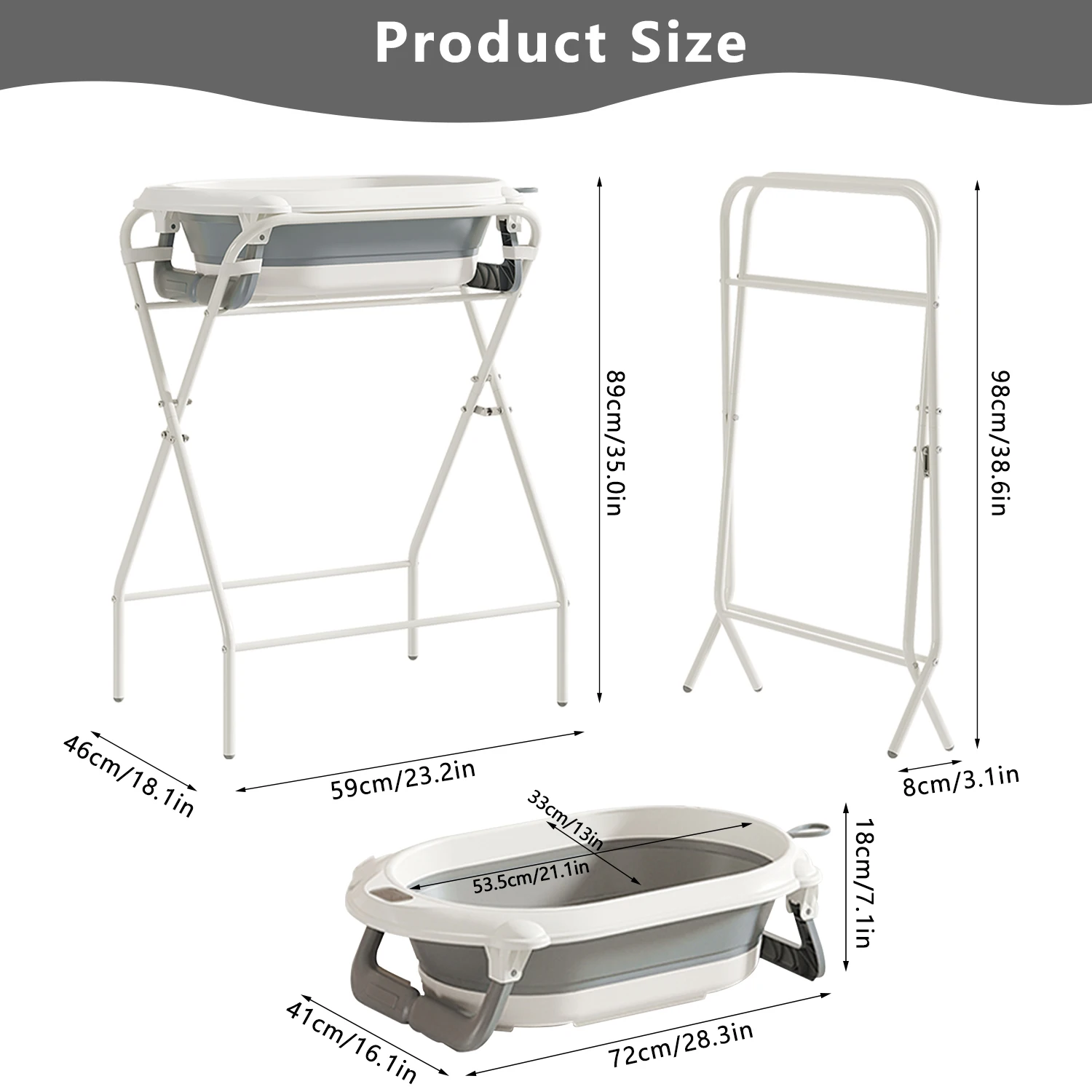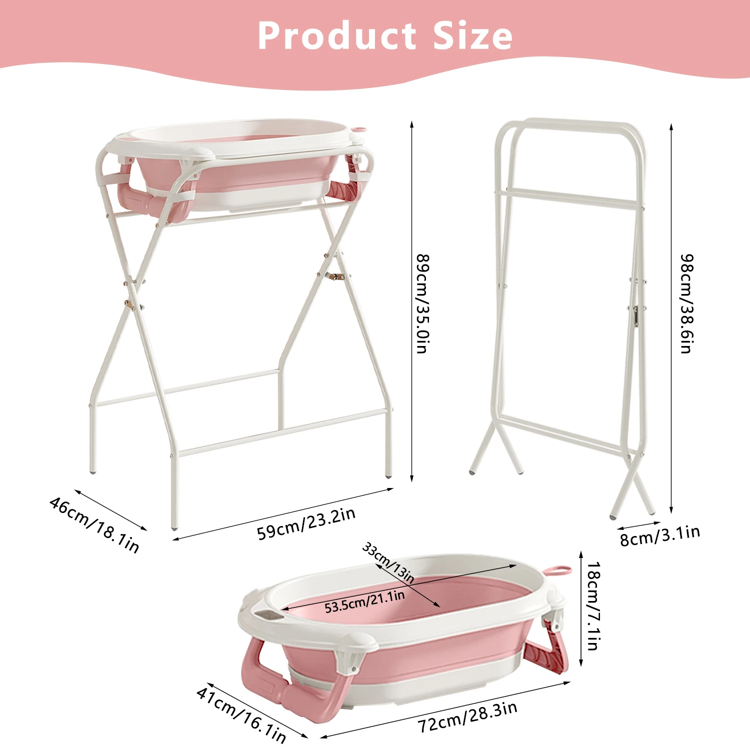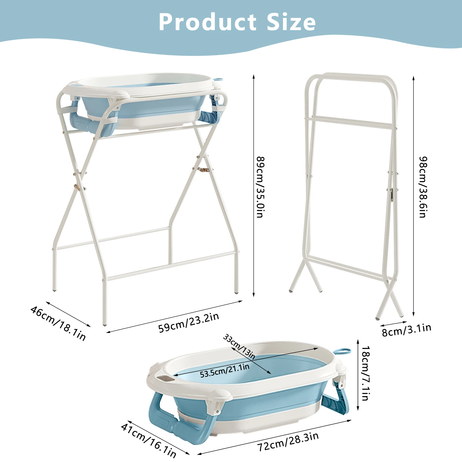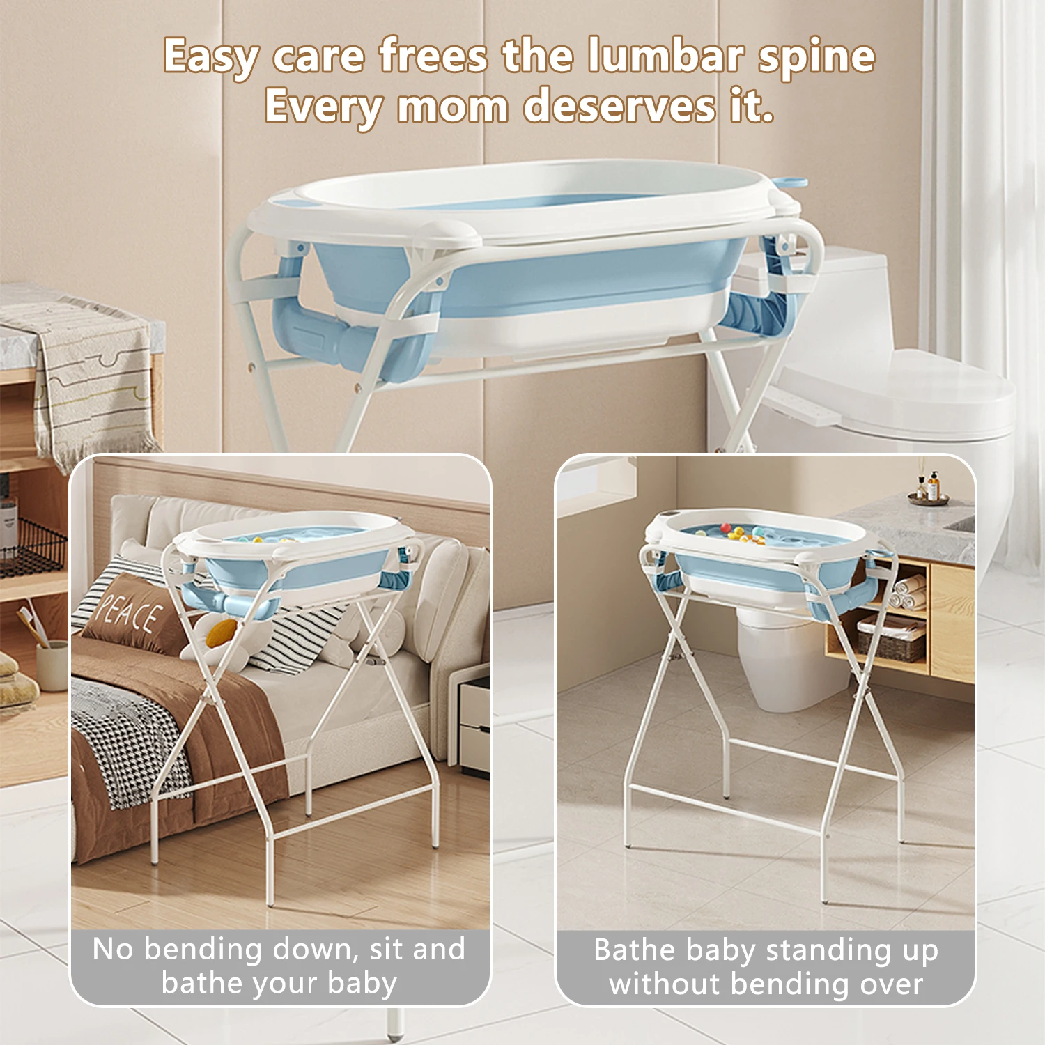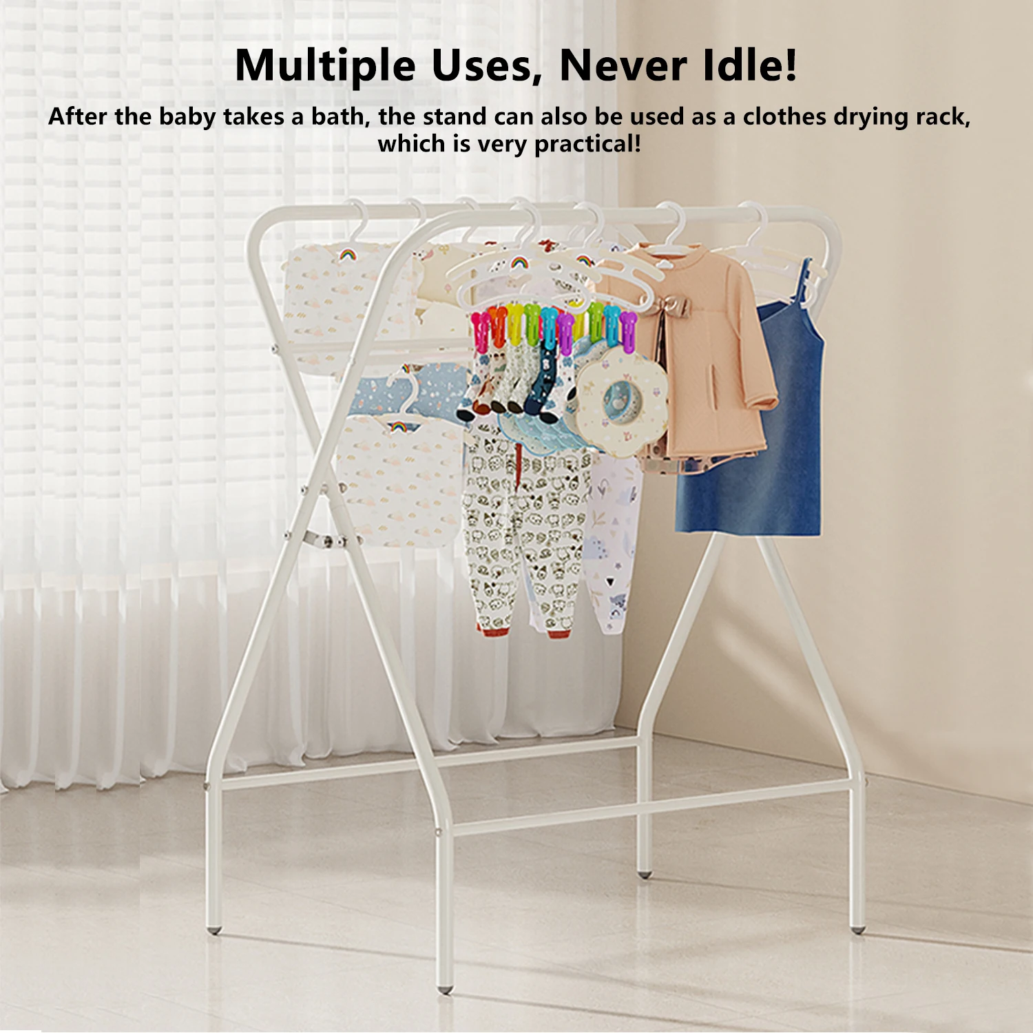 Un support de bain pour bébé en métal pliable et robuste, avec un design innovant qui permet aux parents de baigner leurs enfants sans se pencher, réduisant ainsi la pression sur la colonne vertébrale et créant une expérience de bain relaxante pour les parents et les enfants.Le support peut également être utilisé comme étendoir à vêtements supplémentaire.Pour les enfants de plus de 3 mois, nous vous recommandons de placer simplement la baignoire sur le sol sans support.