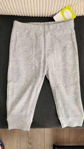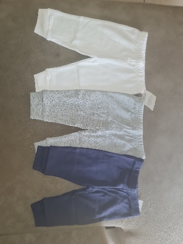 algodon de buena calidad. suave al tacto. compre talla 9M. tamaño real era 1cm mas largo y 1cm mas de cintura de lo que indicaba la descripcion. pero en la descripcion tambien se indicaba que ese nivel de diferencia era posible, asi que todo bien. muy importante revisar la tabla de tamaños antes de comprar