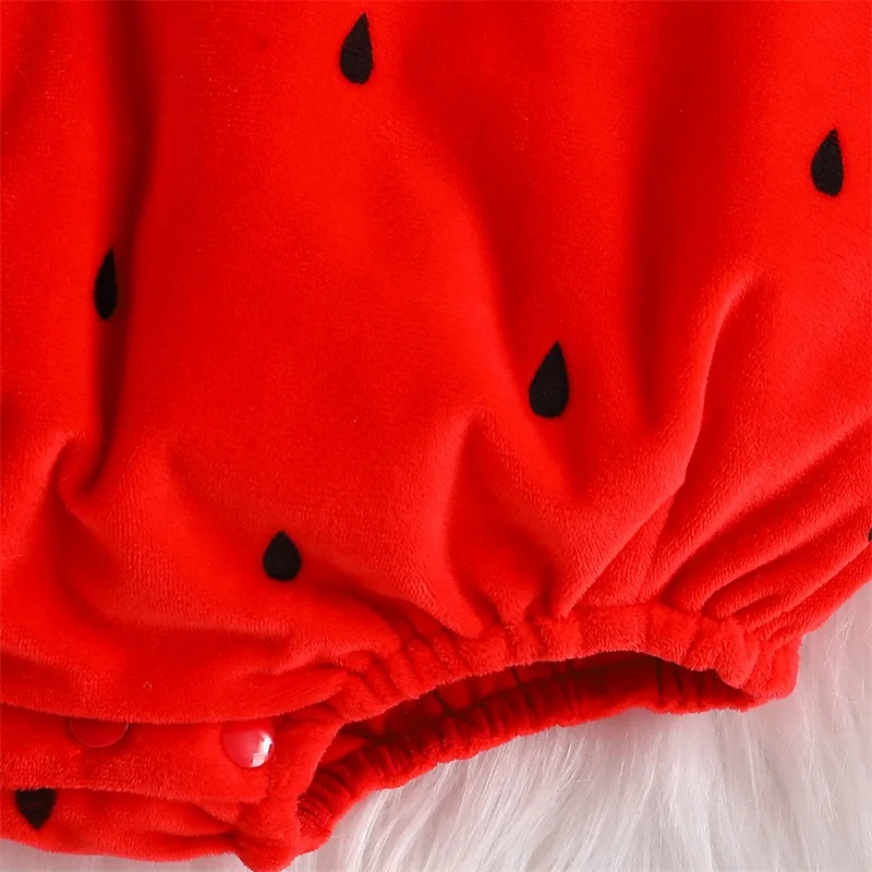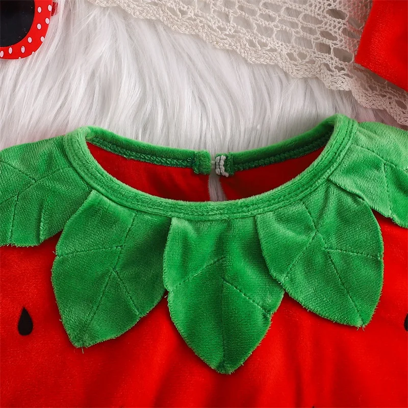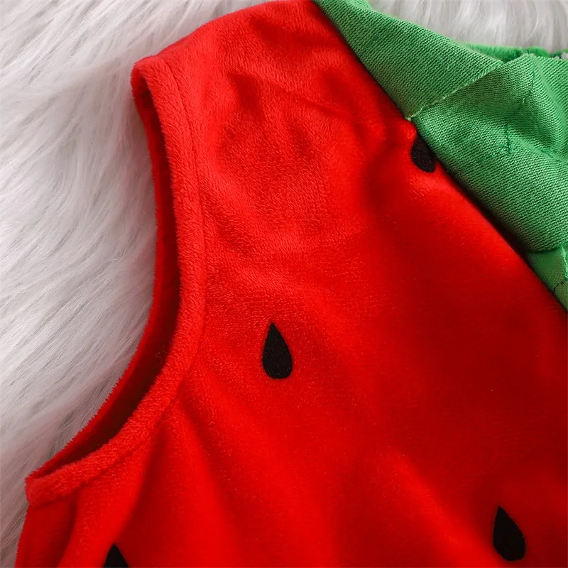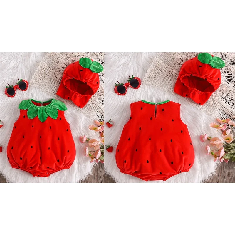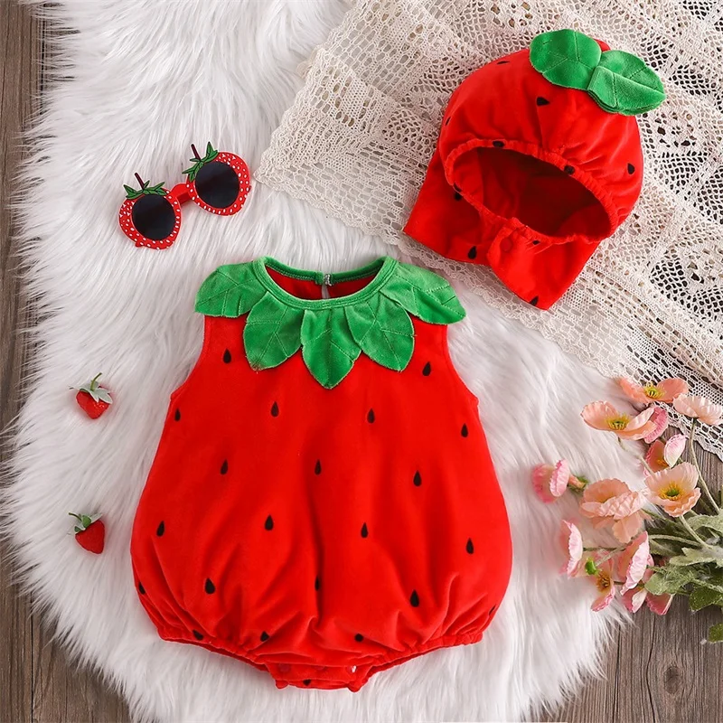 Ensemble de costume de fraise pour bébé garçon fille, chapeau barboteuse fraise sans manches en polaire, vêtements de cosplay pour Halloween.