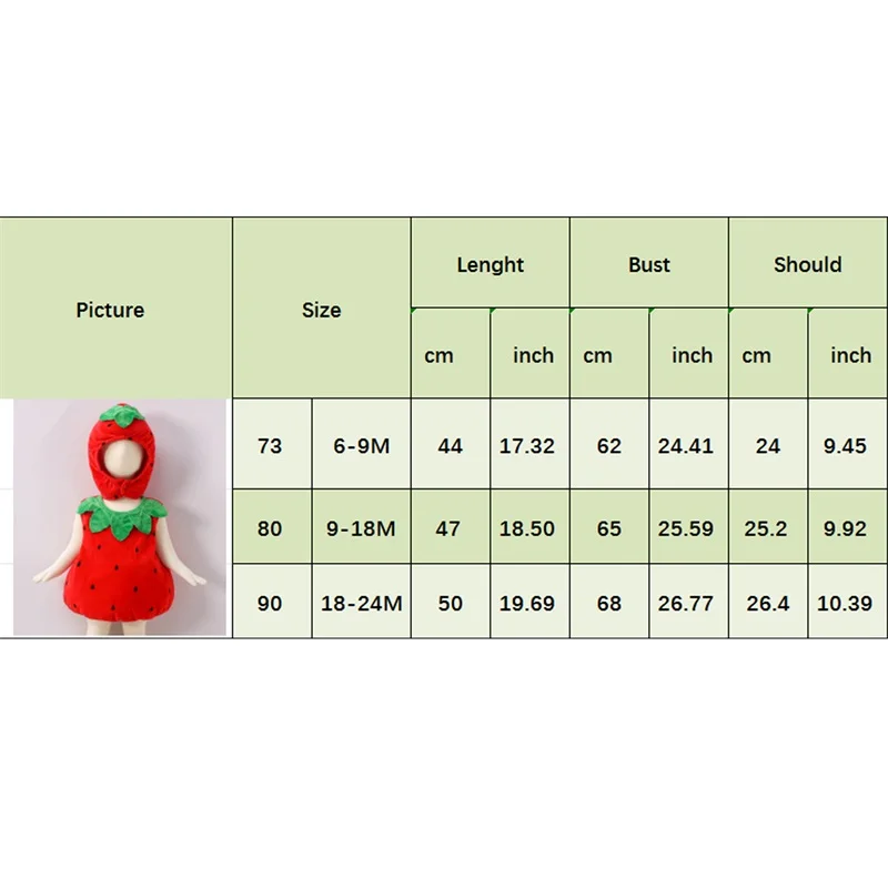 73 Longueur: 17.32 Buste: 24.41 Epaule: 9.45 Age conseillé: 6-9 Mois