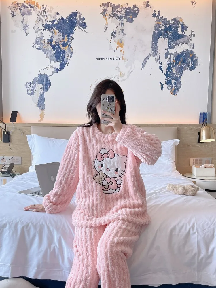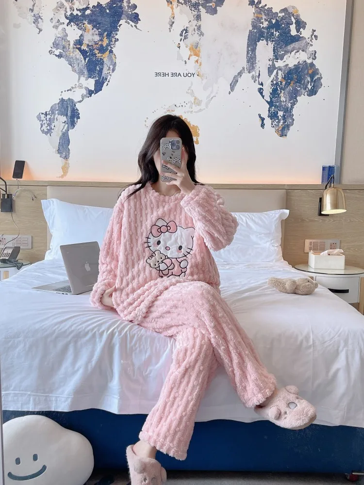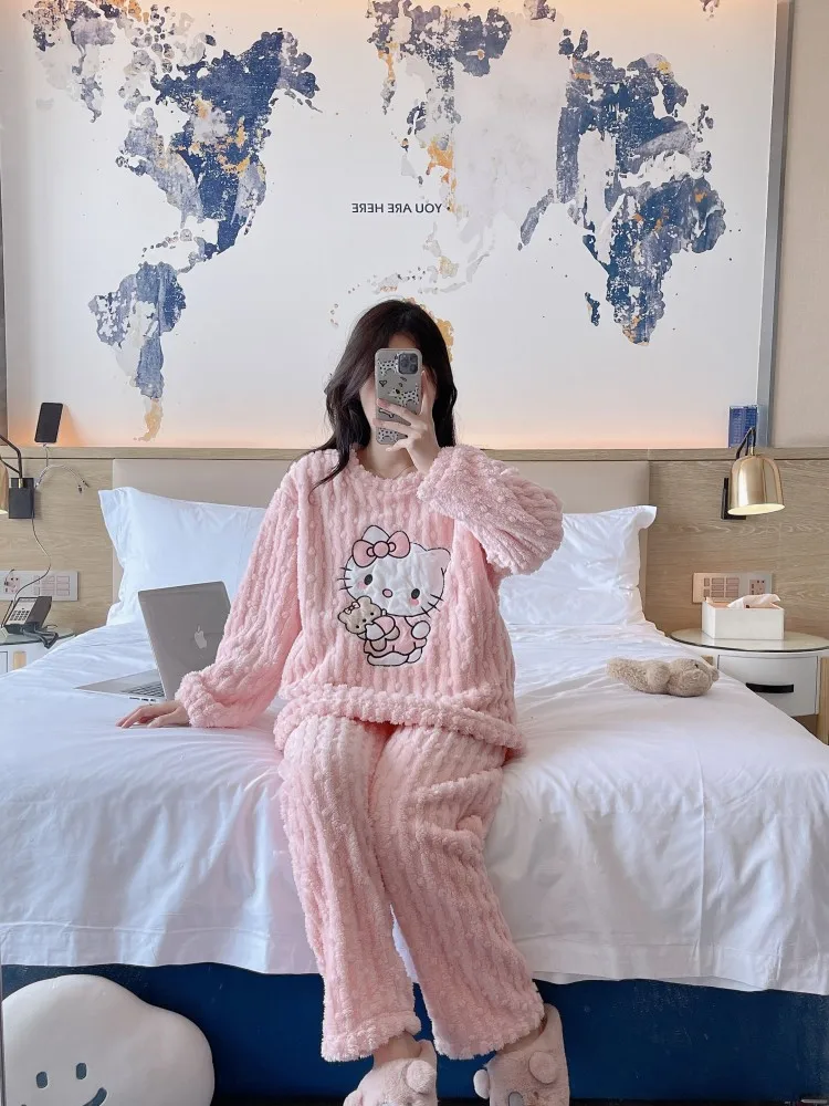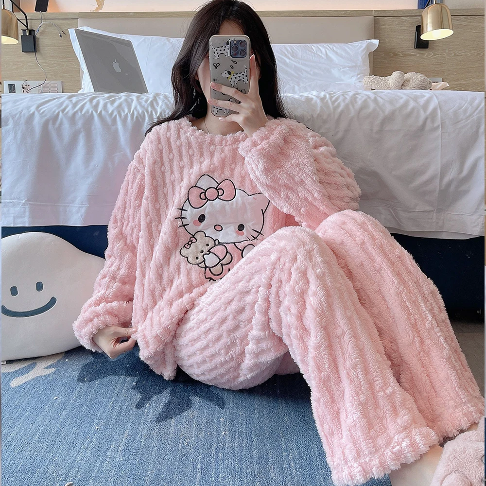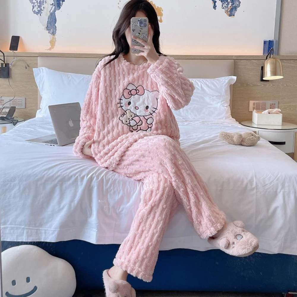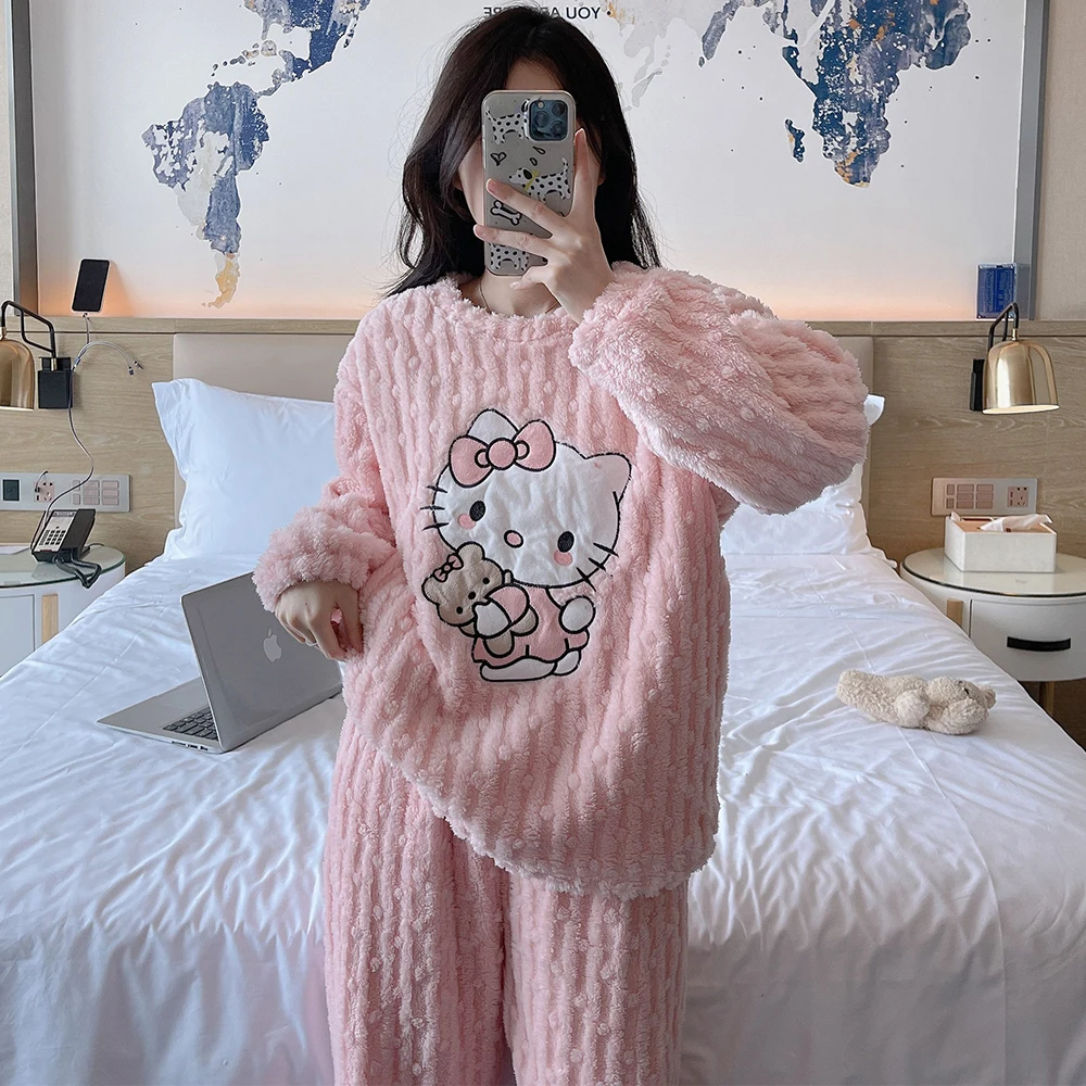 2 pièces/ensemble Hello Kitty pyjama ensemble fille Anime Sanrio rose peluche.