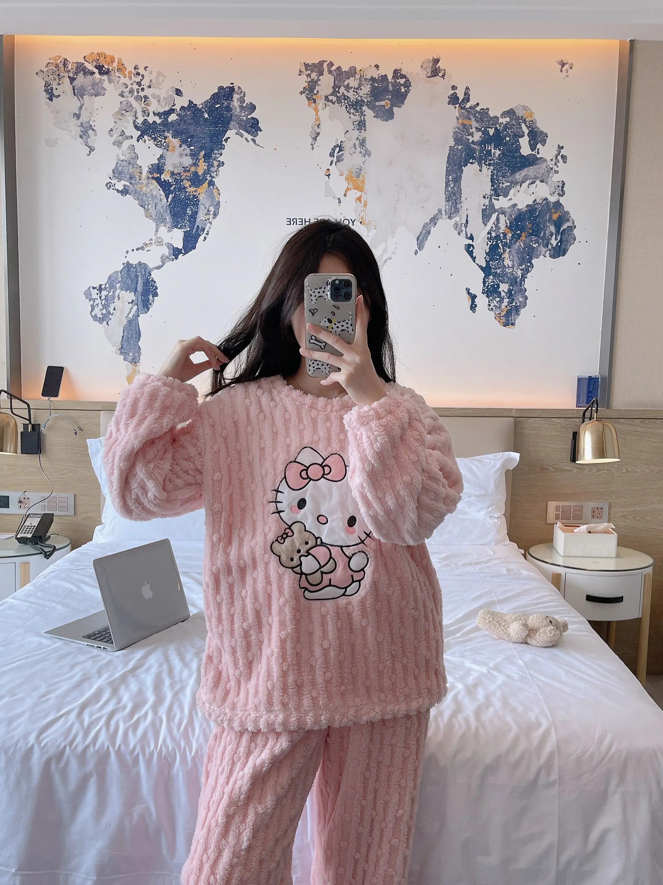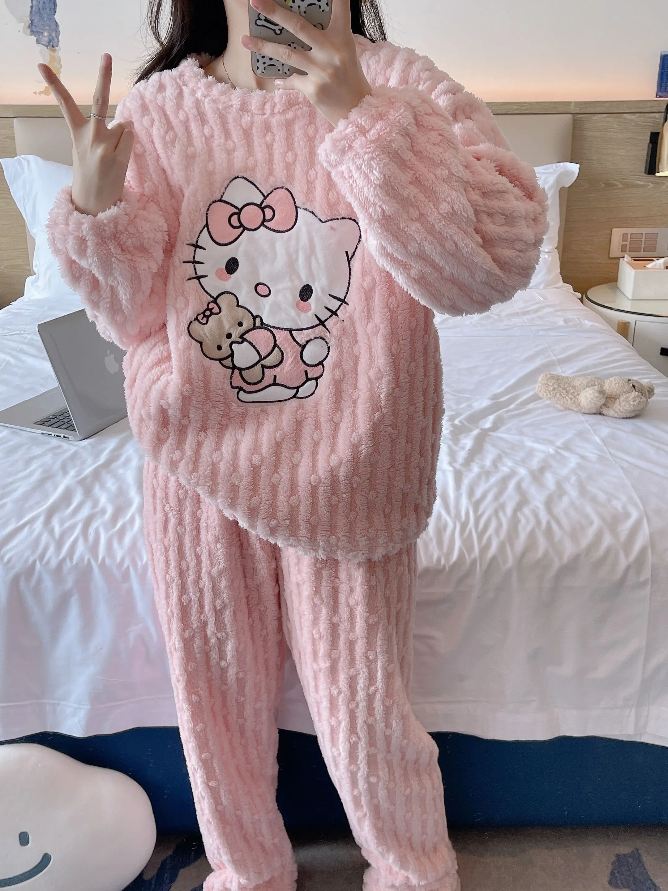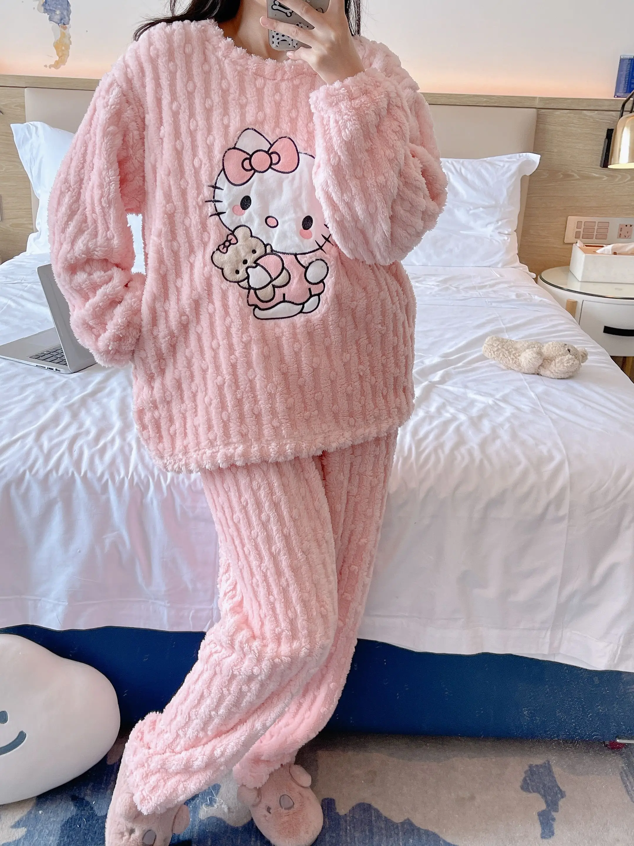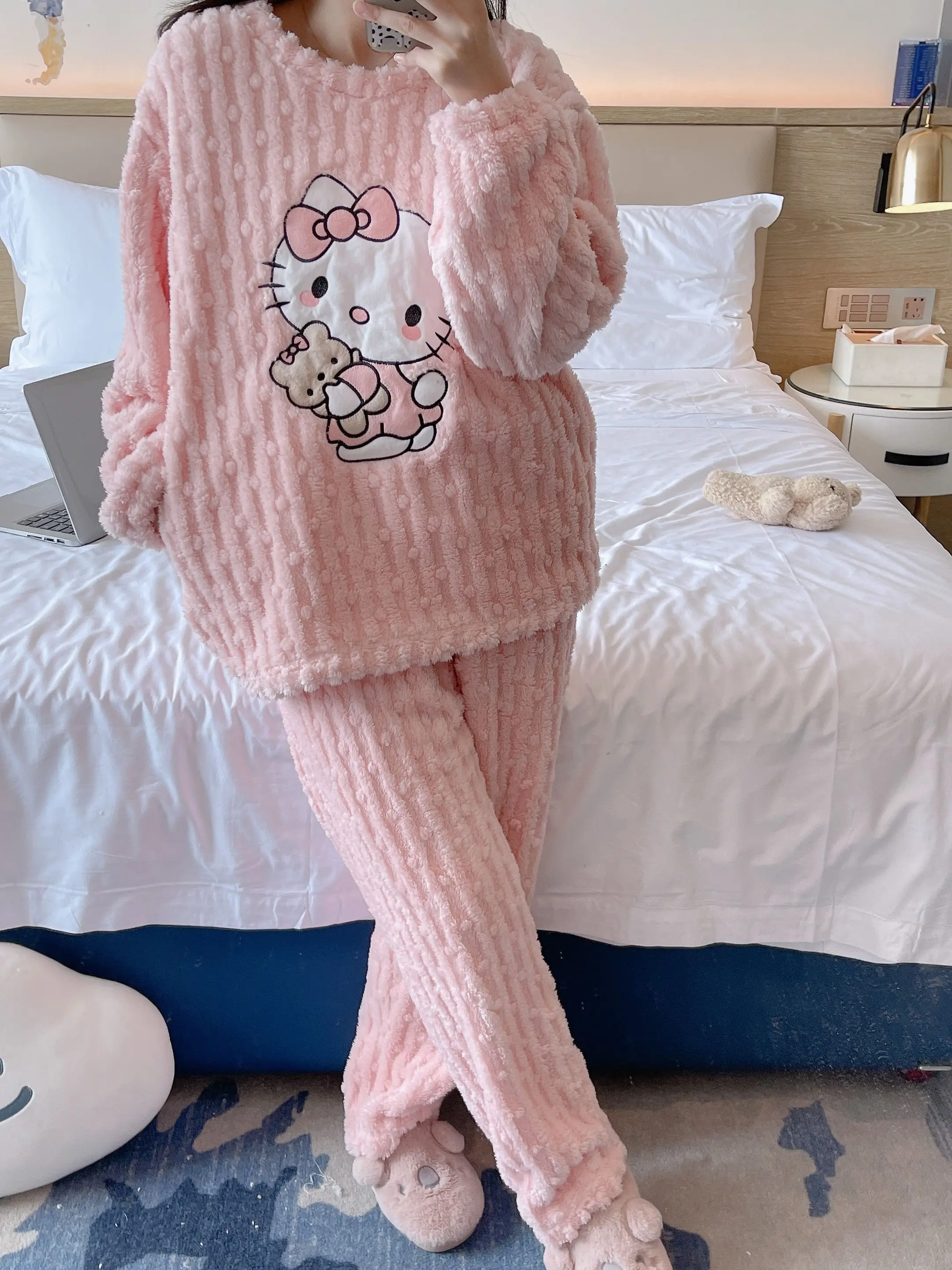 2 pièces/ensemble Hello Kitty pyjama ensemble fille Anime Sanrio rose peluche.