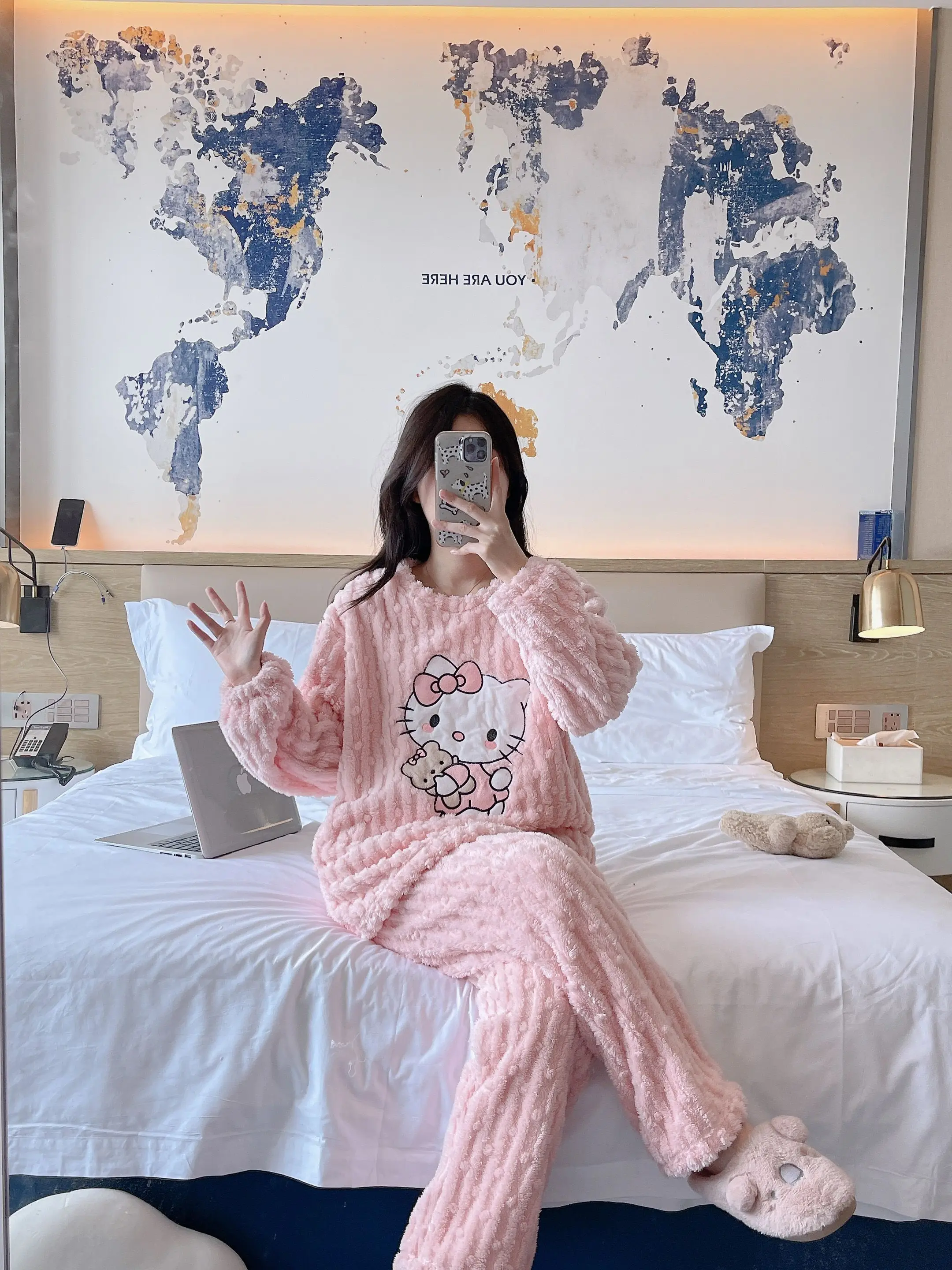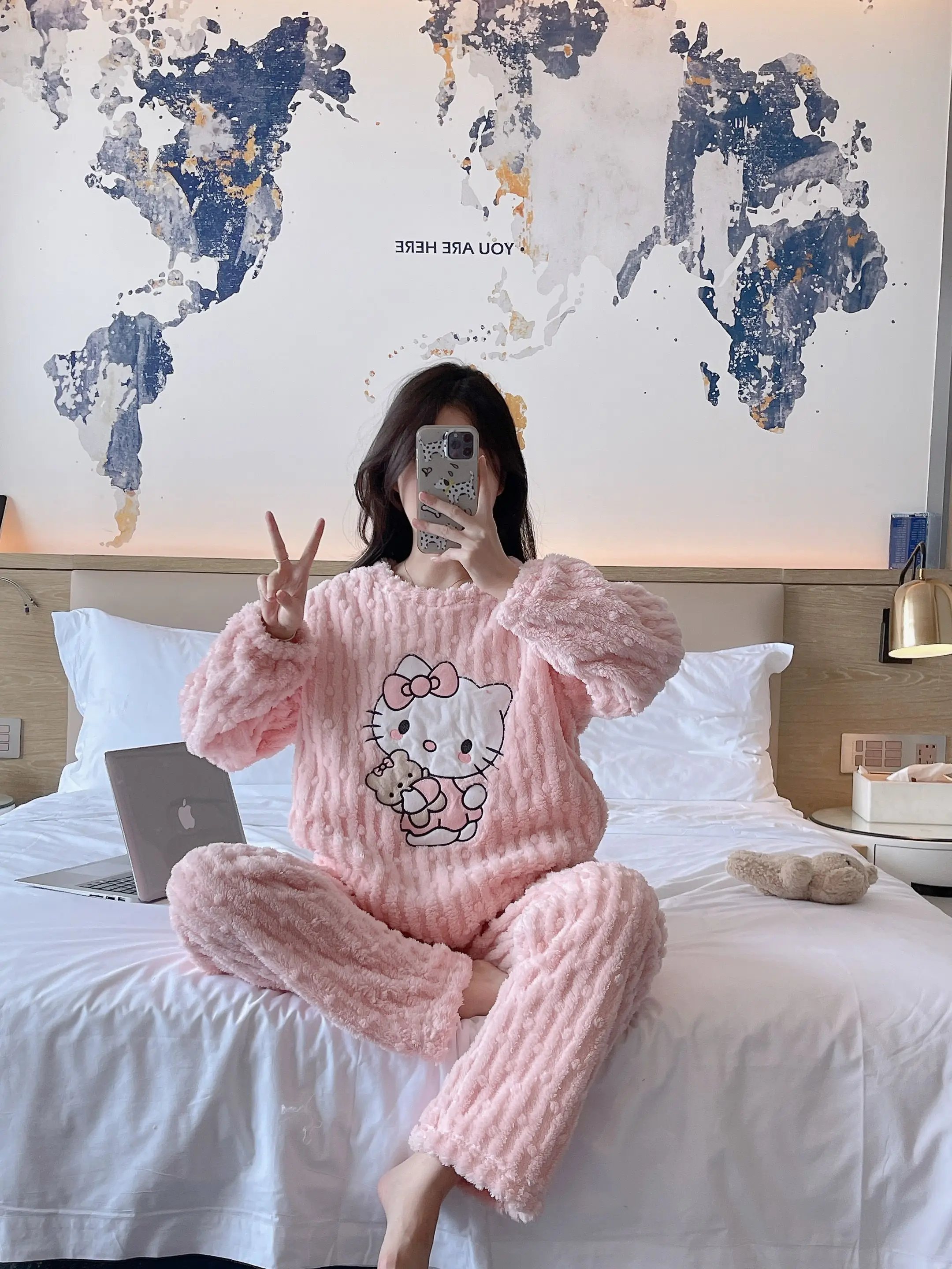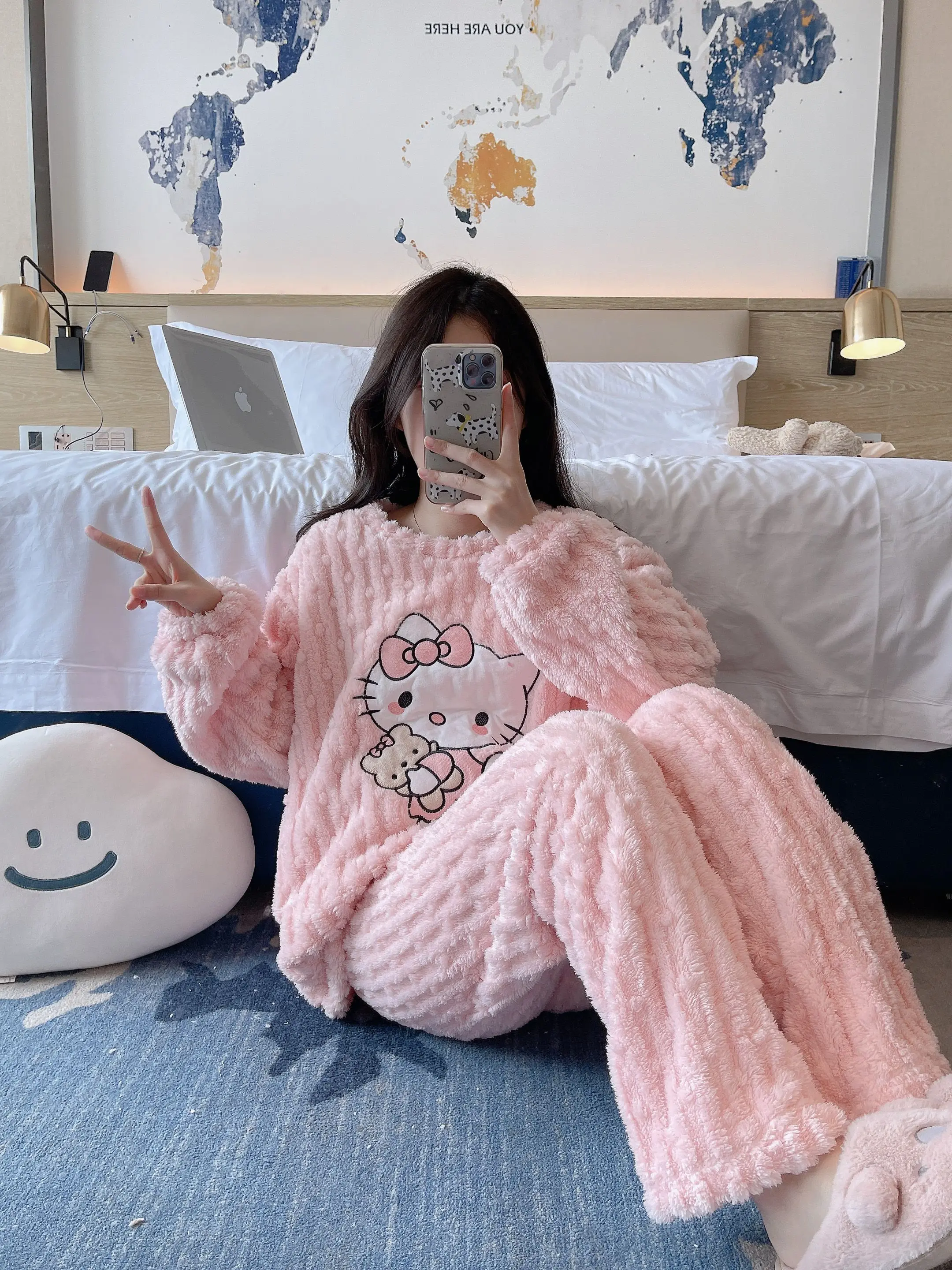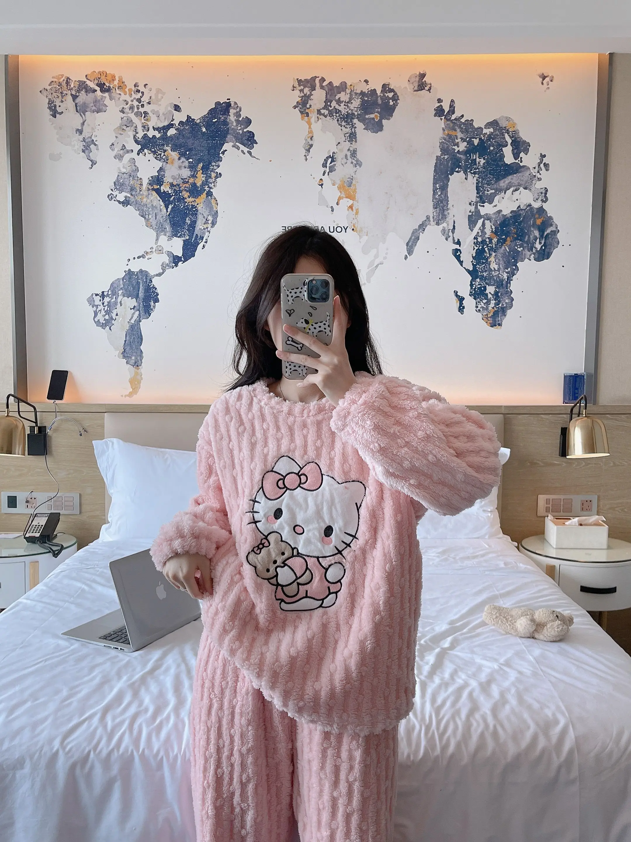 2 pièces/ensemble Hello Kitty pyjama ensemble fille Anime Sanrio rose peluche.