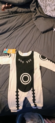 Great quality love the material true to size maybe a little big but hard to tell with baby stuff will definitely order the rest at some point for my little dude I recommend that any anime fan that’s in to this type of stuff to get it for their baby it’s nice and thick too ohh yeah and the print is top notch