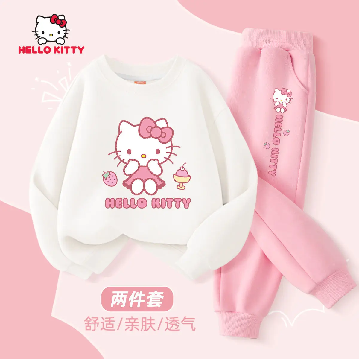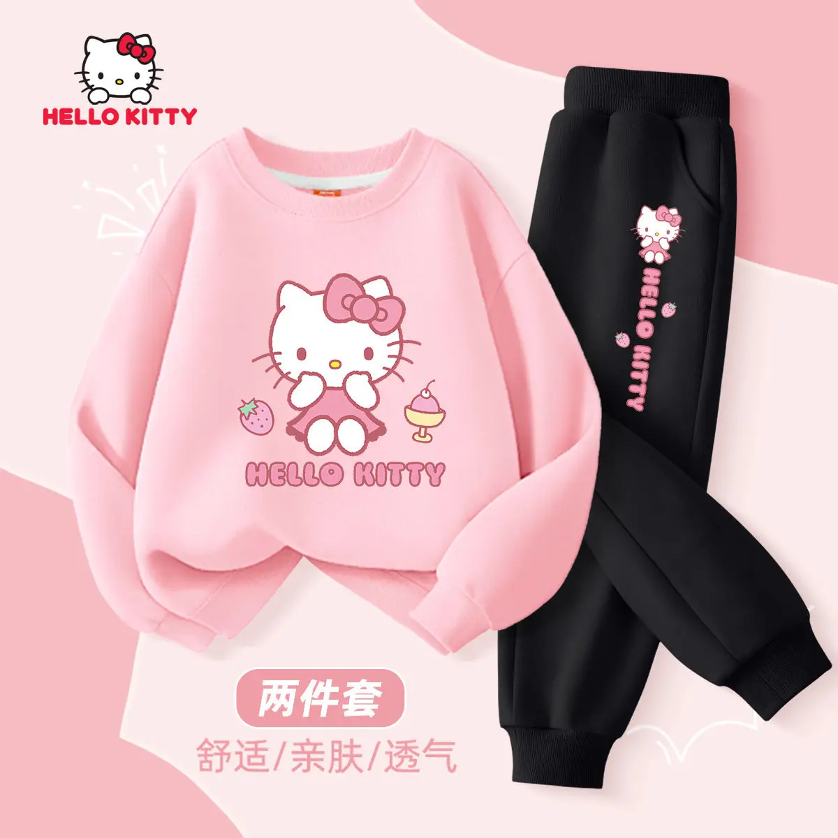 Ensemble de vêtements d’automne pour bébés filles, sweat-shirt imprimé Sanrio Hello Kitty, pull, haut et pantalon, costume 2 pièces, survêtement pour enfants.