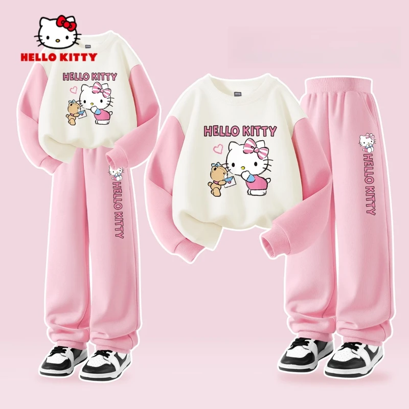 Sanrio automne bébé filles vêtements ensemble enfant Hello Kitty imprimé sweats pull haut et pantalon 2 pièces enfants Patchwork survêtement.