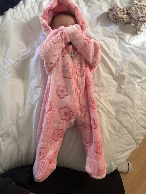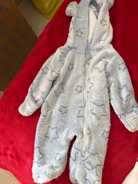 This flannel romper suit is true size for my newborn, really cool color, super soft material. the price is really reasonable. i bought this for my newborn son. during the winter it is suitable for outing. no irritation for baby’s skin.